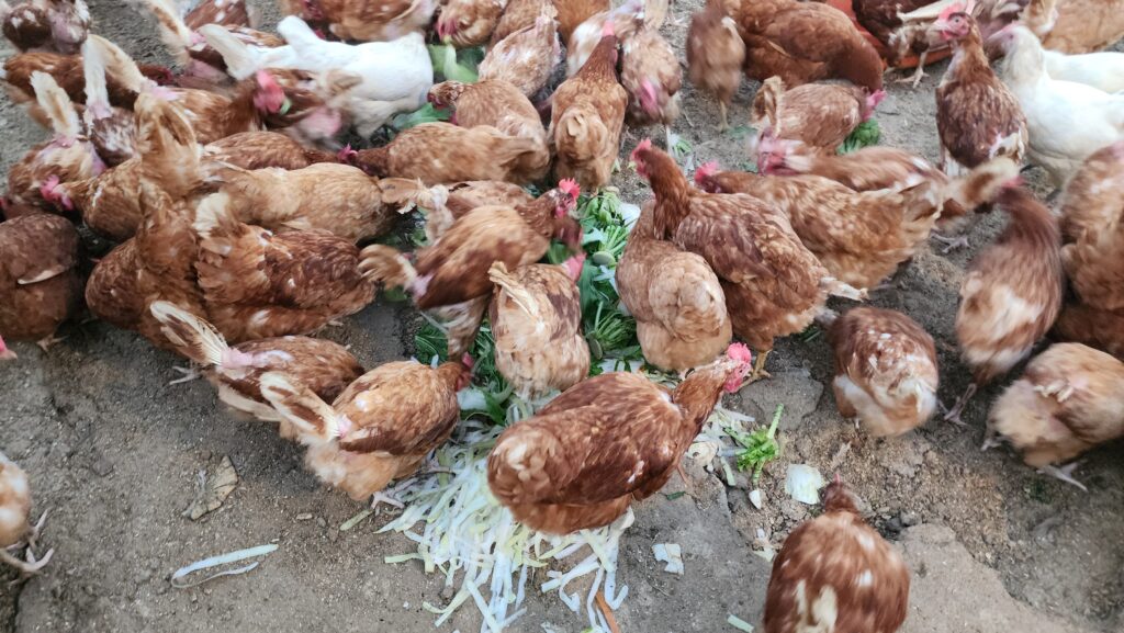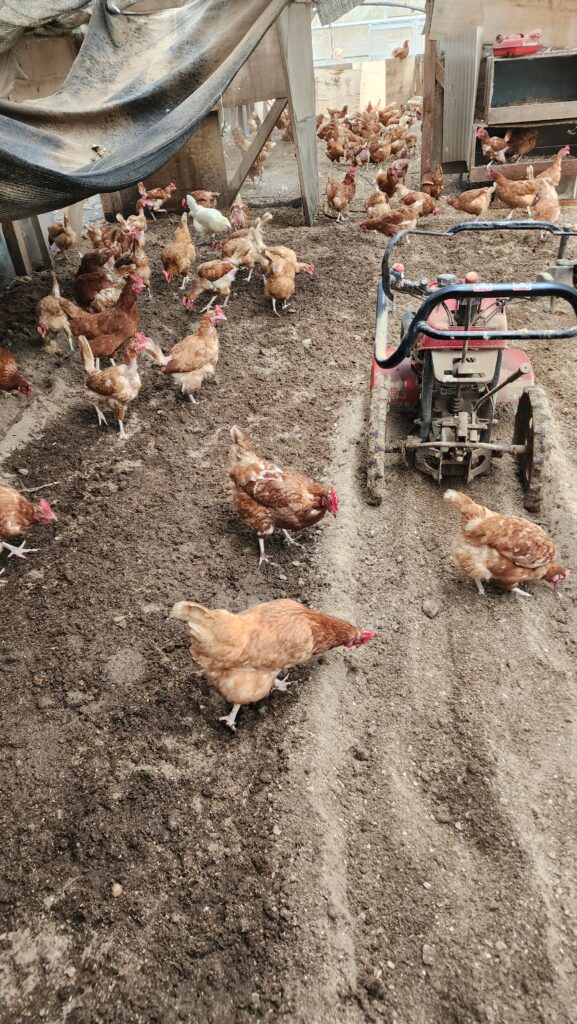 当園ではニワトリを平飼いにすることで、ニワトリにストレスをかけず健康的な状態をキープしています。